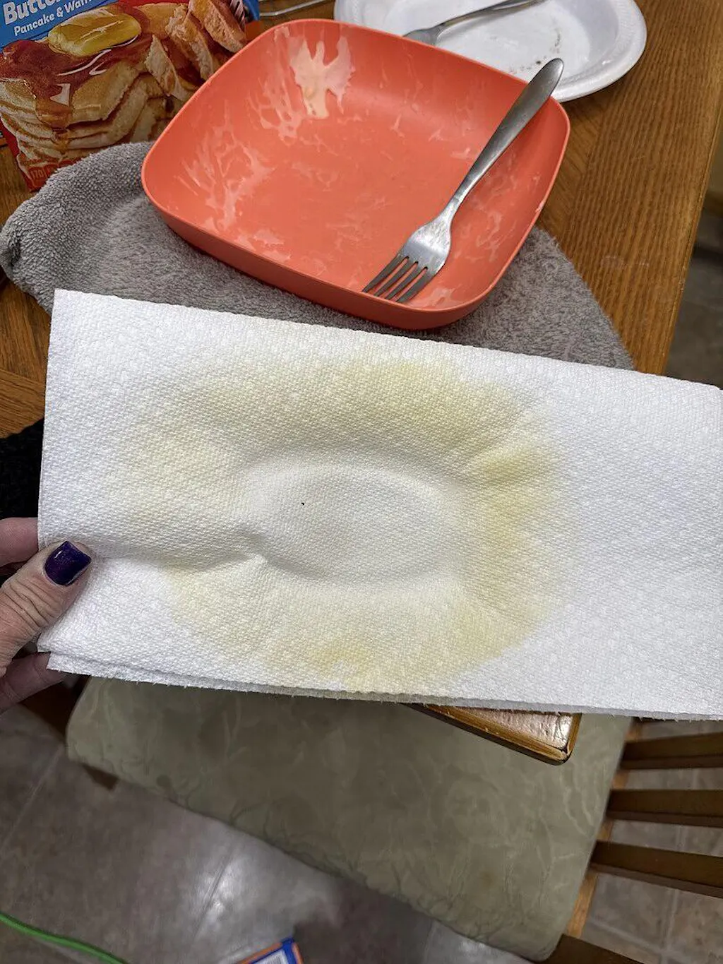 3. Cover with paper towels and place a weighted object on top. The bottle works great.
